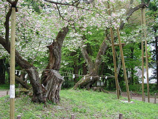 ]2.2メートル(計8本)会津五桜のひとつで、福島県緑の文化財登録第327号でもある。開花は4月中旬で満開時の景観はす